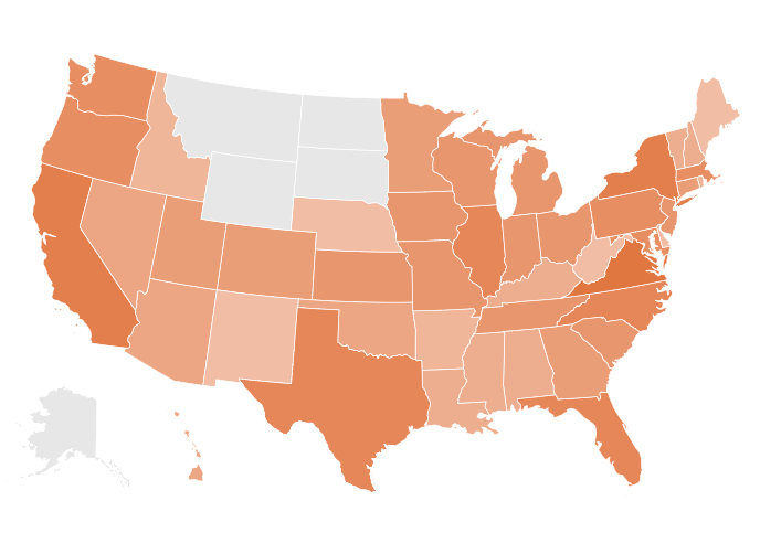 Welcome to new subscribers, including especially Georgia, and Heather B., Tess C., Willow G., H. W., and Robert T. Some of those new subscribers join others in the US. We are in these states (darker coloring indicated more subscribers): Looks like we need outreach to residents of Montana, the Dakotas, Wyoming, and Alaska if we are to cover the entire US…help?