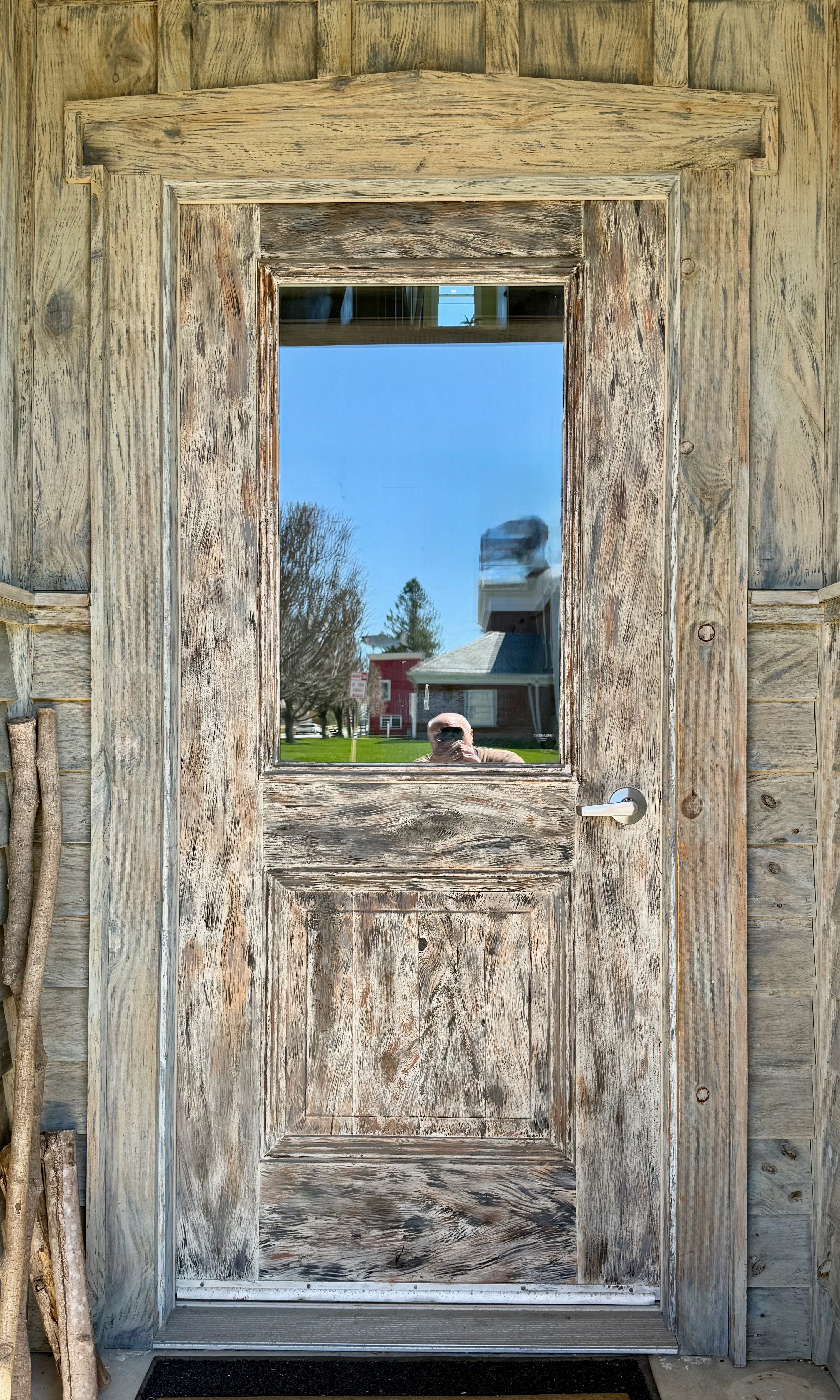 After lunch, I took this photo of the door that, I think, leads to a second floor area above some businesses on the main east-west street. If you look closely in the reflection2 on the glass, you’ll see your editor and photographer taking the photo.