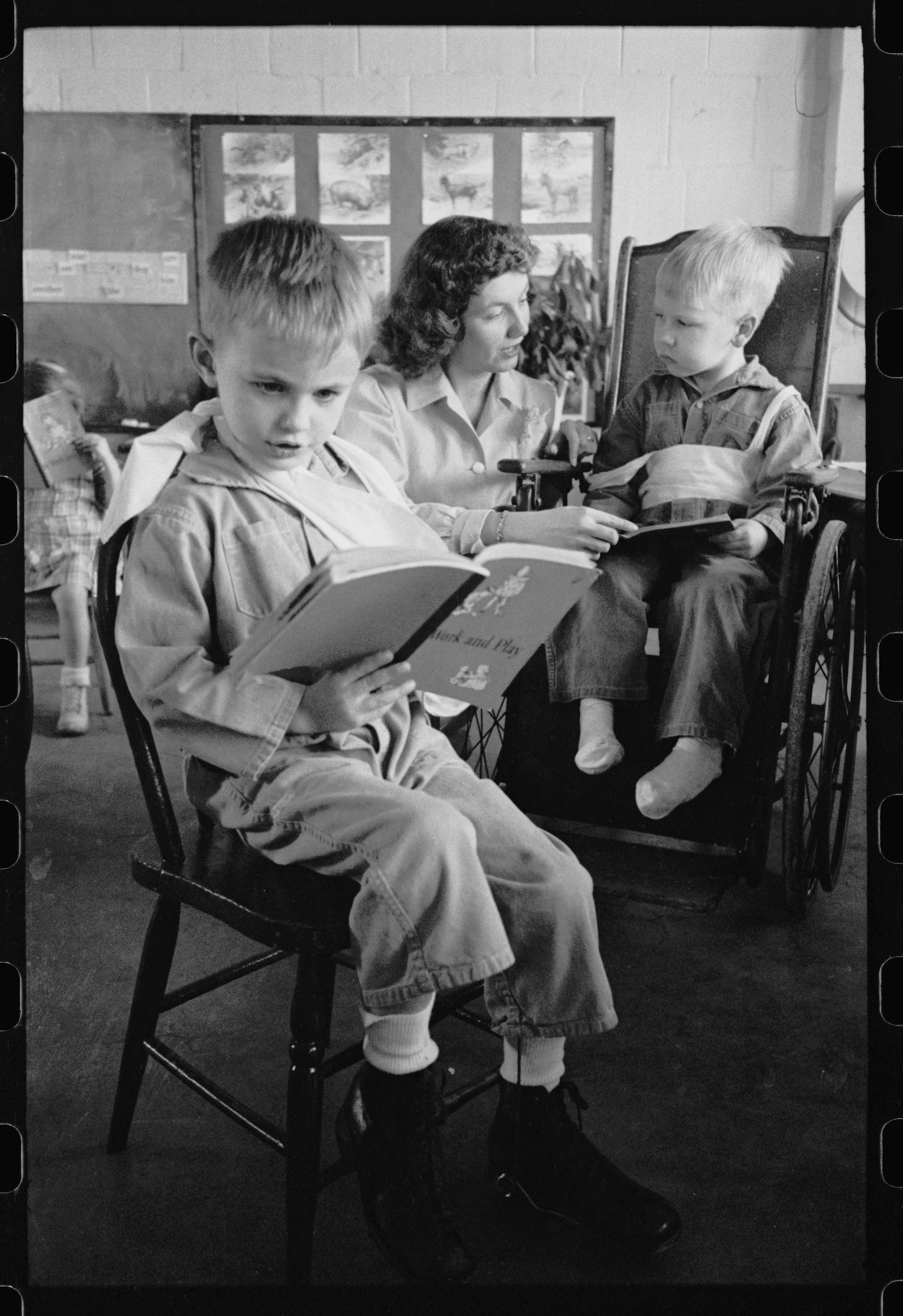 I was intrigued by this photo not only because of its connection to Mr. Kubrick, but also by some interpretations that I put on it. Of course the lead spin was that it shows kids who appear to have disabilities getting instruction in 1949, a time that some readers might consider dang near the dark ages.2