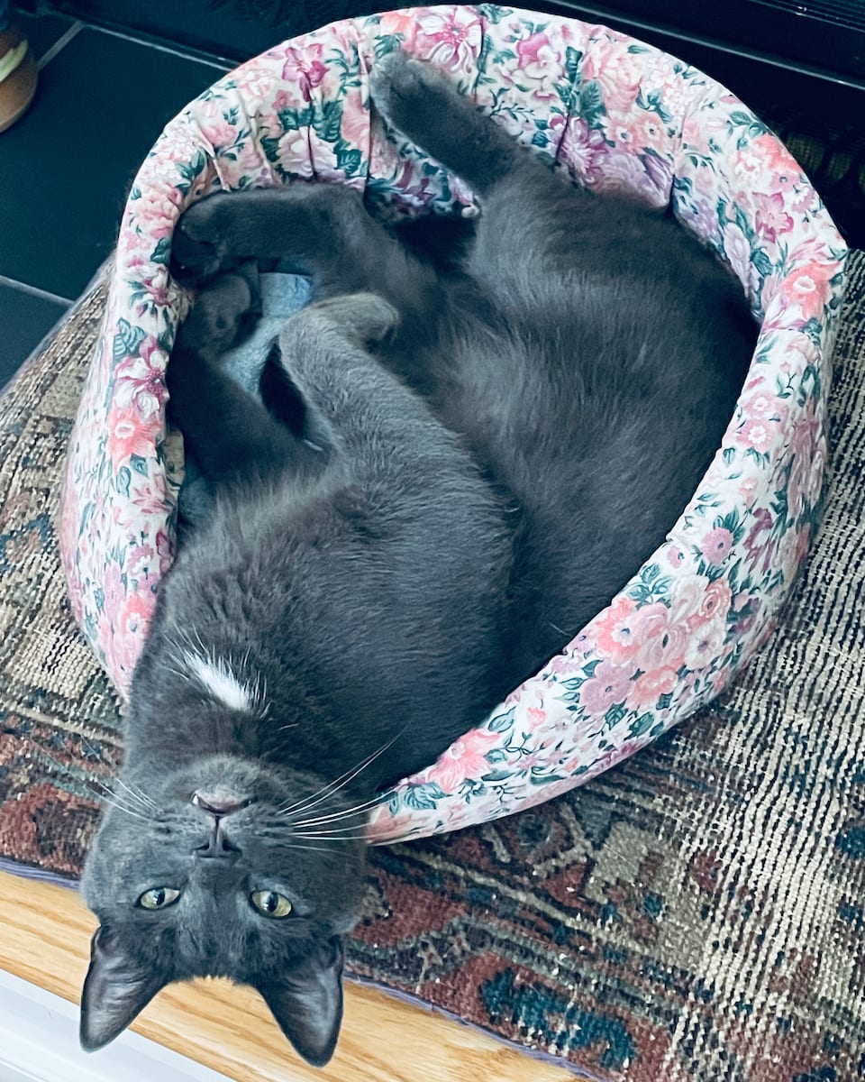 One of the two cats who lives with us is a big male. His name is Bill. He is so big he does not fit in the cat beds. His mother, who also lives with us, is about 11/15ths of Bill’s size. She fits in the bed just fine.
